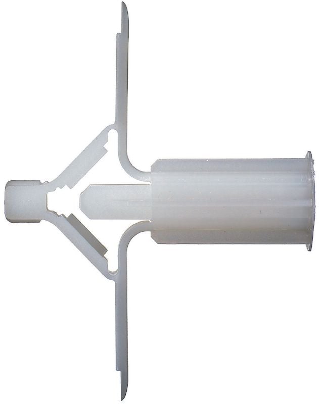 Ekonomická plastová sklopná hmoždinka pro kotvení do děrovaných cihel a sádrokartonu pomocí běžných vrutů do dřeva