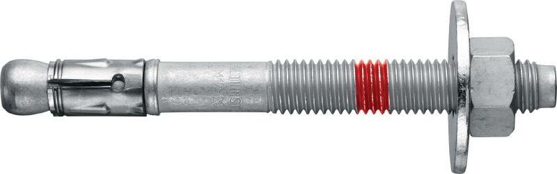 - Expanzní kotva z pozinkované uhlíkové oceli s velkou podložkou pro veškeré bezpečnostní kotvení v betonu s trhlinami i bez trhlin