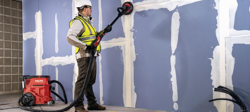 - Broušení sádrokartonových ploch a tmelů. Motor s variabilními otáčkami poskytuje lepší kontrolu jakosti povrchu a míry úběru