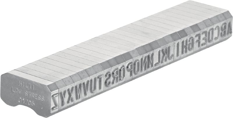 Úzké číslice a písmena s oblými hranami na vyrážení identifikačních značek do kovu