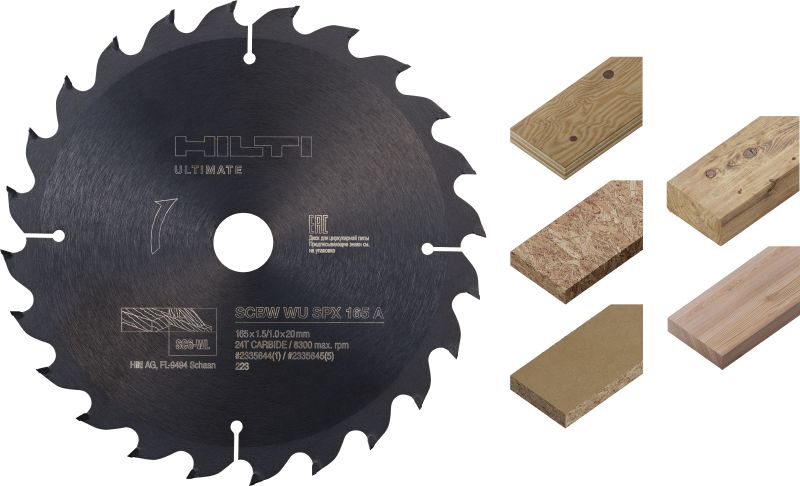 - Špičkové pilové kotouče Hilti pro řezání dřeva, zkonstruované tak, aby vám pomohly provést práci rychleji a uříznout více s jedním kotoučem